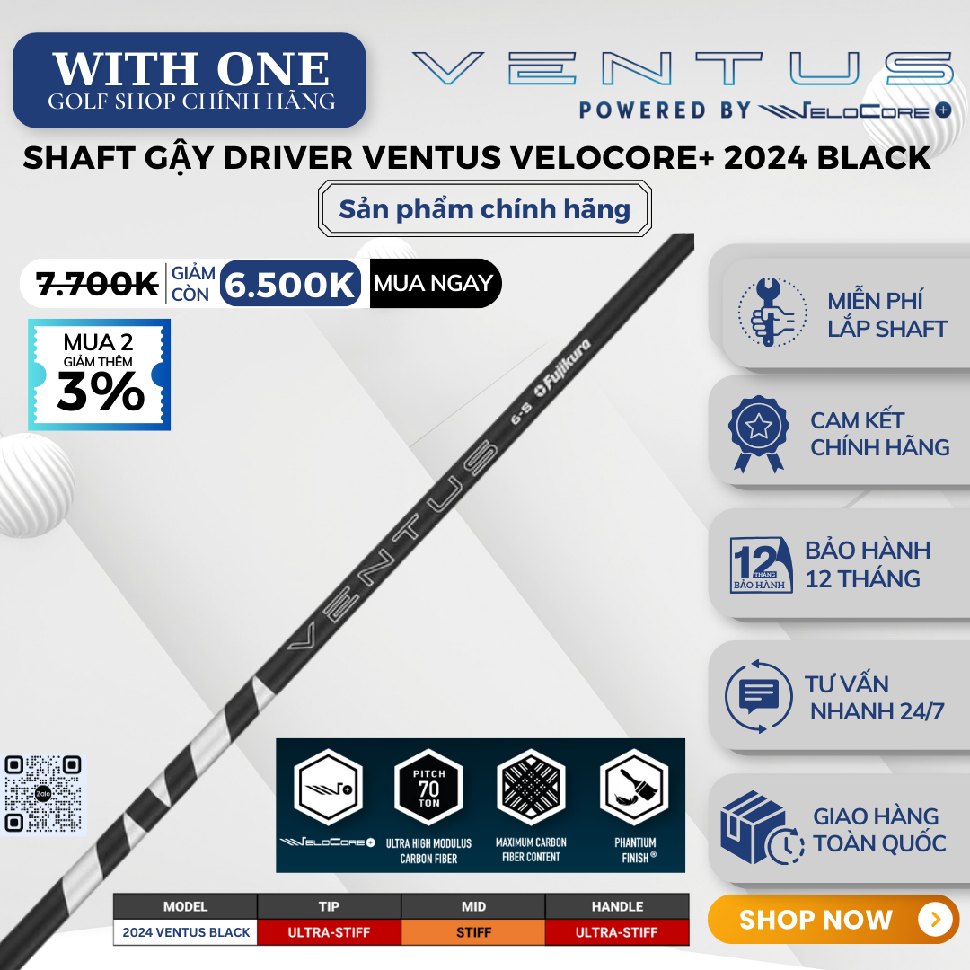 Shaft gậy golf VENTUS Velocore+ 2024 – Sp nâng cấp tuyệt vời có hiệu suất cao nhất và thành công nhất trong lịch sử Fujikura, mang lại cho người chơi kết quả hiệu suất cao hơn so với phiên bản tiền nhiệm: Ventus & Ventus TR.