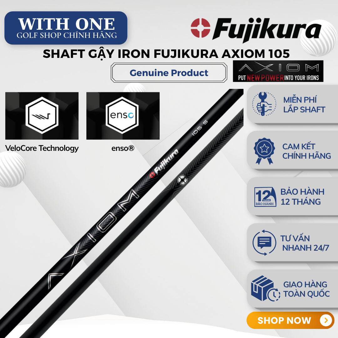 ⏏ CÔNG NGHỆ VELOCORE :AXIOM đánh dấu kỷ nguyên mới của shaft gậy sắt hiệu suất cao, kết hợp tính ổn định vượt trội, độ chính xác nhất quán và khả năng kiểm soát linh hoạt tối đa – mang đến cho golfer sự tự tin tuyệt đối trong mọi cú swing.